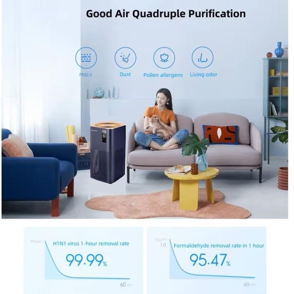 - SMART CONNECTIVITY: WiFi-enabled air purifier with mobile app control, touch panel interface and remote control for convenient operation