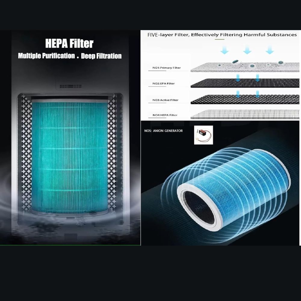 - SUPERIOR FILTRATION: 5-stage filtration system featuring True HEPA13 filter and activated carbon to eliminate up to 99% of air pollutants